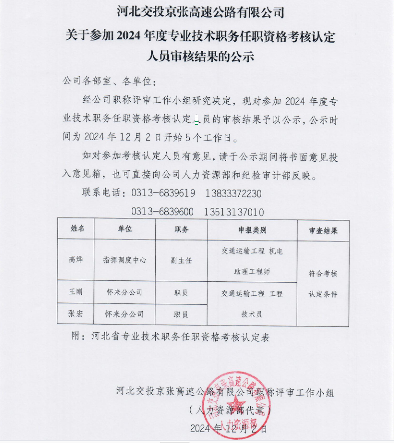 關于參加2024年度專業(yè)技術職務任職資格考核認定人員審核結果的公示