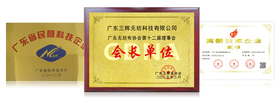 Our company has been considered as the leading supplier of nonwoven machinery in China and worldwide and the result is that SANFAI has awarded China National High-Tech enterprise and Guangdong Private Science Innovation Enterprise.